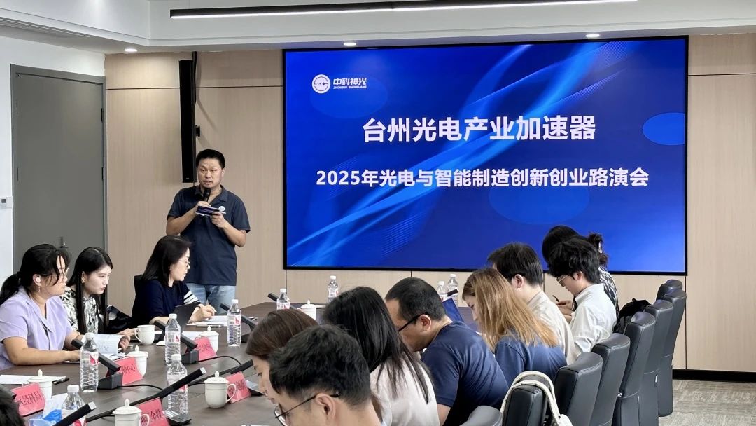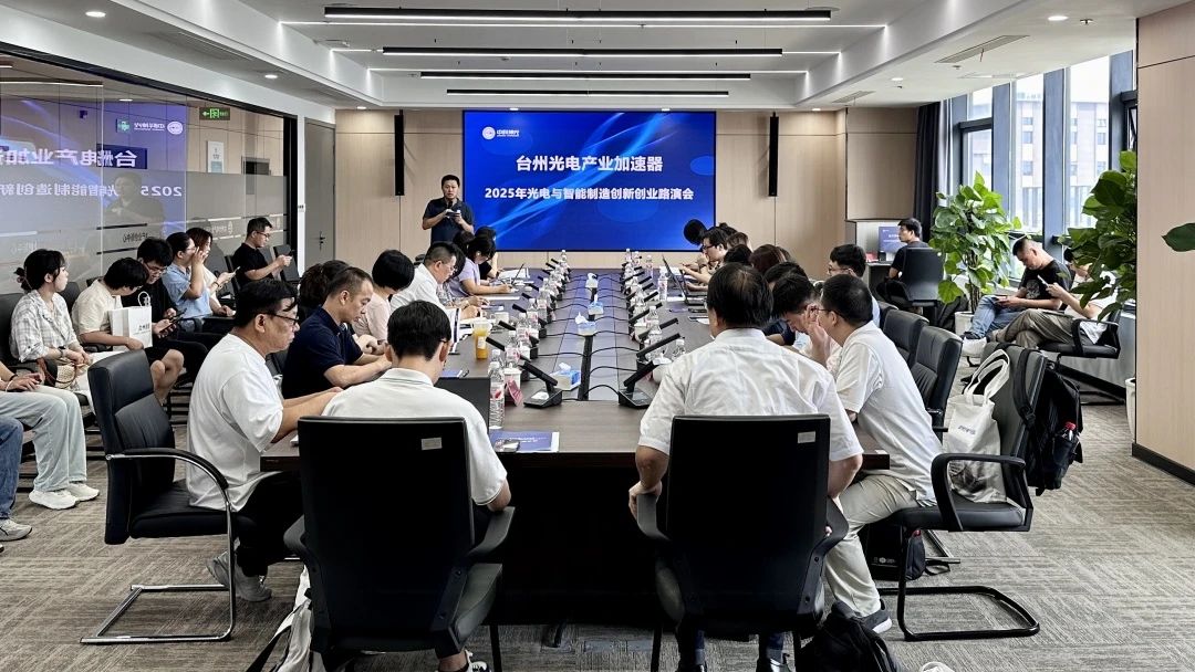 2025年7月17日下午,“台州光电产业加速器2025年光电与智能制造创新创业路演会”在台州光电产业创新中心成功举办。椒江区经济信息化和科学技术局副局长周谨、椒江区科技事业中心副主任蒋梦莹、椒江区人力资源和社会保障局副局长张坤林、椒江区工投集团副总经理王海燕等出席活动。来自政府、科研、产业、金融等领域的40余位代表齐聚一堂,共话光电与智能制造前沿技术,共谋产业创新与协同发展。