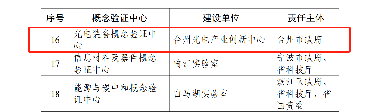 为全面贯彻落实省委省政府《关于加快建设创新浙江 因地制宜发展新质生产力的实施方案》,提升我省科技成果转化质效,浙江省科技厅公布首批22家概念验证中心建设布局清单。台州光电产业创新中心建设的光电装备概念验证中心入选浙江省首批概念验证中心!
