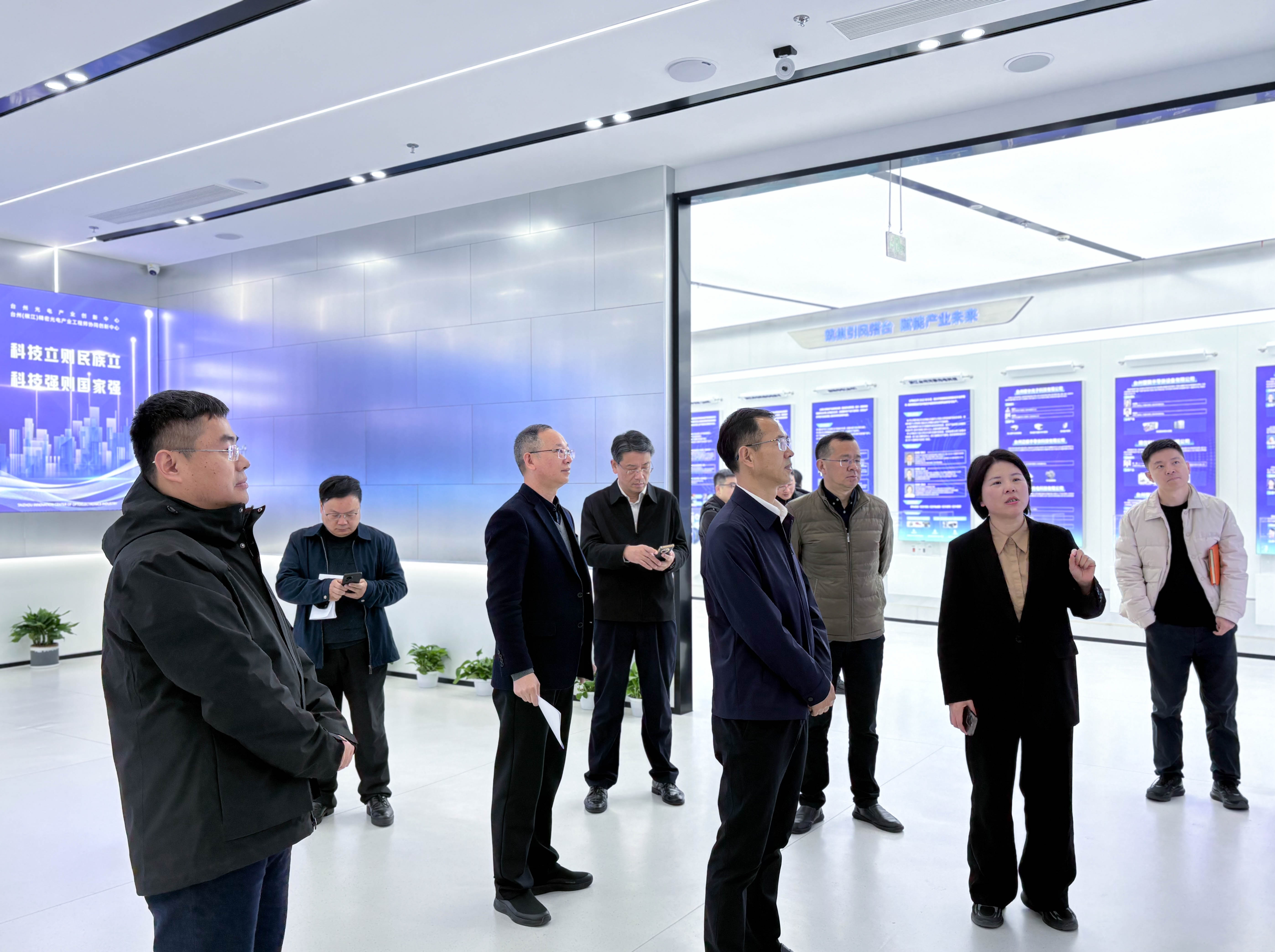 浙江省人大教科文卫委副主任委员张国强率队专题调研中心建设及教育、科技、人才一体化发展工作。调研组一行实地走访中心展厅、半球谐振陀螺仪实验室、高制程掩模基板制造技术与装备实验室,详细了解企业全周期服务、产业链协同创新等工作成效。中心主任徐学科陪同调研。