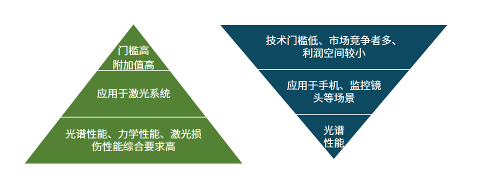 基于光学干涉原理,利用膜层对P光偏振光和S偏振光有效导纳不同而研发的激光偏振膜,可以将入射的S偏振光进行反射,P偏振光进行透射,进而将入射光按照偏振态进行分离。在光学系统中,偏振膜起着分光、调制、整形及隔离等重要作用,在激光加工、激光雷达、激光测距、激光医疗、激光通信中都有着重要应用。