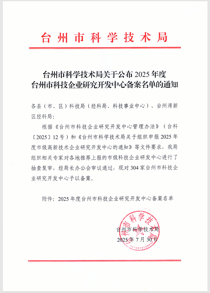近日,台州市科学技术局发布了《台州市科学技术局关于组织申报2025年度市级高新技术企业研究开发中心的通知》。其中,台州光电产业加速器入驻企业格灿光电(台州)有限责任公司和浙江台州天擎光电科技有限公司成功入选。